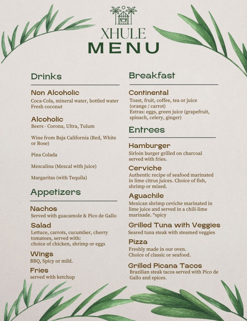 Your On-site Xhule Restaurant Bar & Grill also provides delicious Mexican Soul Food for you right at home.