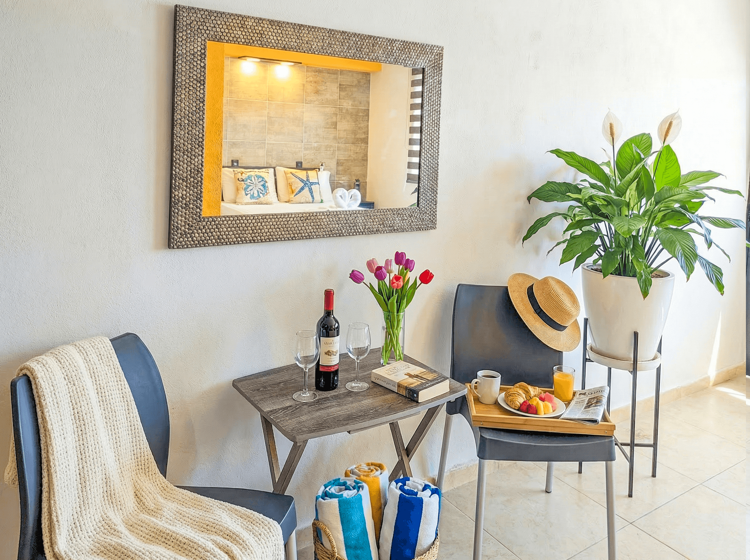 Inspired by Capri’s effortless Mediterranean elegance, this bright apartment blends crisp whites, warm accents, and natural textures. Lemon‑grove details and coastal art create a serene space for slow mornings, relaxed afternoons, and romantic nights. A calm, stylish retreat where you can slow down, sleep well, and experience Playa like a local.