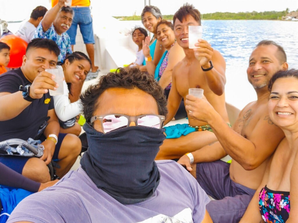 While there are many tours you can take around Cozumel on a boat, one of my favourite tours on Cozumel is to El Cielo or “Heaven”. El Cielo is a part of the island accessible only by boat. Our captain pictured above responds to either Julio or Antonio Banderas. Good vibes all day long.